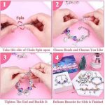 3 x náramkov, 20 x farebných korálok, 20 x rôznych ozdôb na náramky, 20 x rôznych tvarov príveskov, 1 x darčeková krabička.