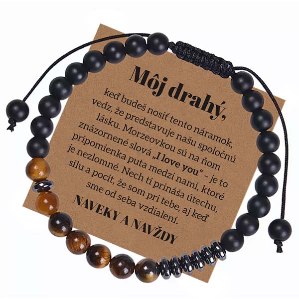 keď budeš nosiť tento náramok, vedz, že predstavuje našu spoločnú lásku. Morzeovkou sú na ňom znázornené slová,,I love you“ – je to pripomienka puta medzi nami, ktoré je nezlomné. Nech ti prináša útechu, silu a pocit, že som pri tebe, aj keď sme od seba vzdialení.