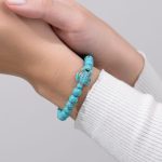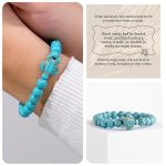 Tento krásny tyrkysový korytnačí náramok je zmysluplným doplnkom, pretože morské korytnačky sú známe svojou múdrosťou, trpezlivosťou a vytrvalosťou. Navyše, tento zmysluplný náramok s morskou korytnačkou pôsobí pri nosení plážovým, bezstarostným dojmom. Korálky sú tyrkysové a drží ich pružná, pevná šnúrka. Tyrkysová morská korytnačka pláva v línii týchto žiarivo modrých korálok a vytvára neodolateľný módny doplnok.