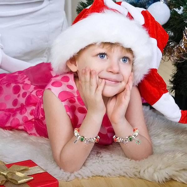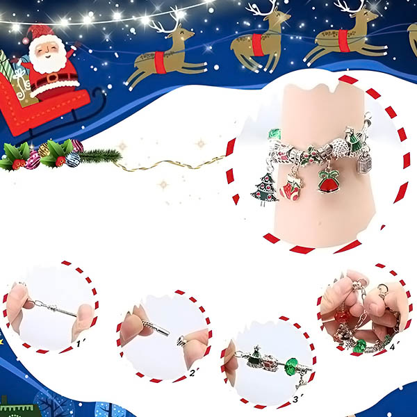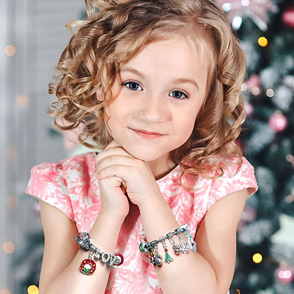 Vynikajúca možnosť pre dievčatá, ktoré si rady vyrábajú vlastné šperky. Tento náramok slúži ako pútavá remeselná aktivita počas večierkov, ktorá umožňuje dievčatám kombinovať a spájať korálky a závesky a prispôsobiť si tak svoj jedinečný módny náramok na Vianoce.
