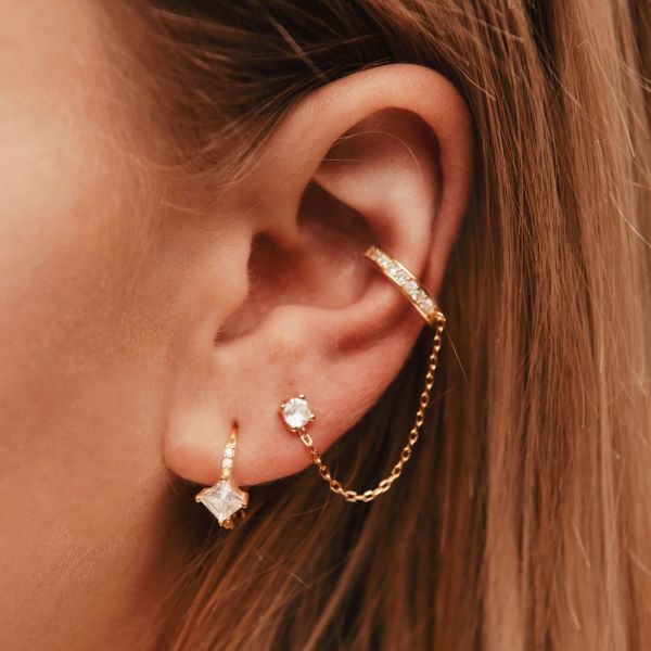 Dvojdielnu náušnicu Clarie môžete umiestniť podľa vlastného uváženia a vytvoriť si na uchu zaujímavé umelecké dielo. Dobre sa hodí aj v kombinácii s jednou alebo viacerými ďalšími náušnicami. Náušnica je k dispozícii ako jeden kus a je vhodná na kombinovanie so všetkými ostatnými náušnicami.