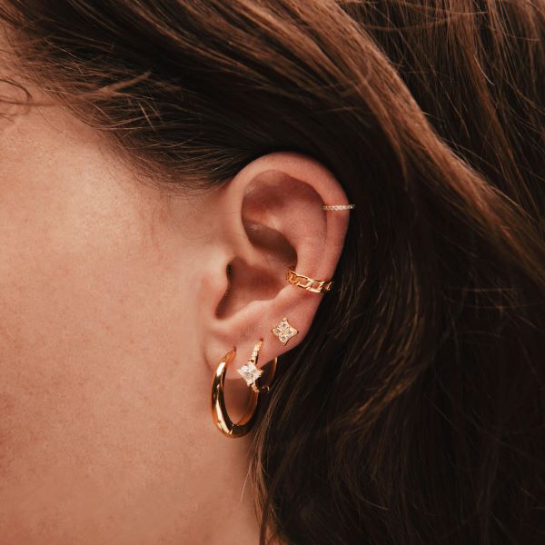 Náušnica Ivy je klasická trochu iným spôsobom. Vďaka jedinečnému dizajnu okamžite upúta pozornosť a zvýrazní kombináciu náušníc, ktorú si vyberiete. Je dostatočne pútavá, aby ste ju mohli nosiť samostatne, ale skvele sa hodí aj k niekoľkým ďalším náušniciam. Náušnica je k dispozícii ako jeden kus a je vhodná na kombinovanie so všetkými ostatnými náušnicami.