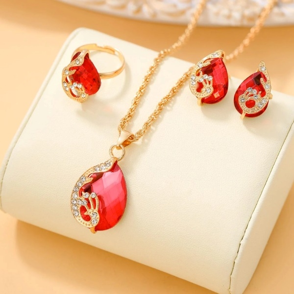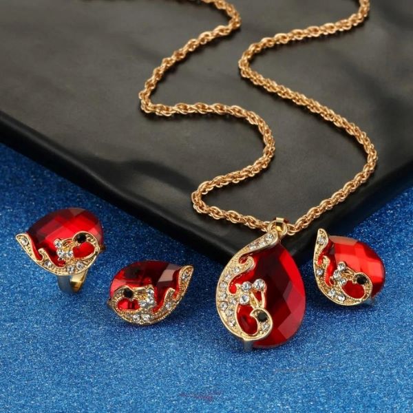 Objavte dokonalú kombináciu elegancie a sofistikovanosti so setom zloženým z hodiniek, náramku, náušníc, prsteňa a náhrdelníka v pôvabnej červenej farbe. Tento krásny set je vytvorený pre ženy, ktoré chcú vyniknúť a zažiariť v každom okamihu.
