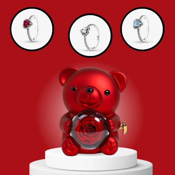 🌹💍 Darčeková súprava večnej lásky: ROSBEAR Šperkovnica a prsteň HEARTISO 💍🌹