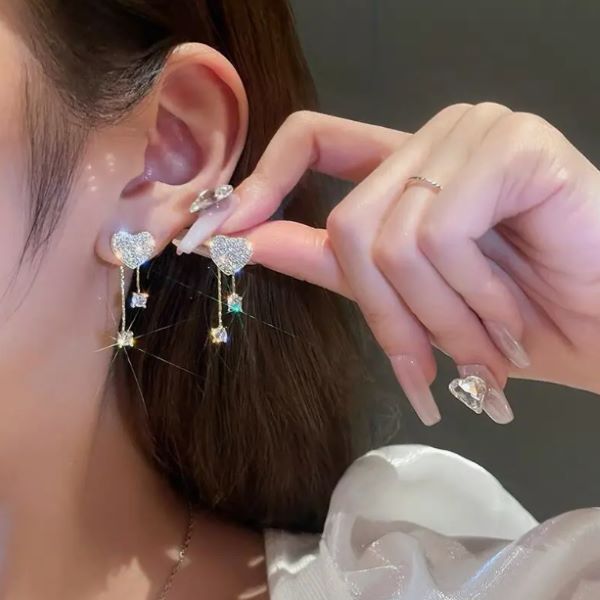 💫 Asymetrická elegancia: Vychutnajte si pôvab asymetrie s týmito strapcovými náušnicami v tvare srdca, ktoré sú nádherne zdobené zirkónmi.